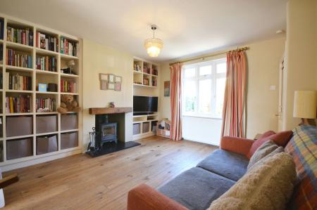 The accommodation unfolds with a welcoming entrance hall, from which the staircase rises to the first floor and doors lead into the principal living spaces. To the front of the house, the sitting room is warm and inviting, enjoying a front-facing window and an attractive feature fireplace fitted with a wood-burning stove, creating a cosy focal point. Wood flooring and useful under-stairs storage enhance both the character and practicality of the room.