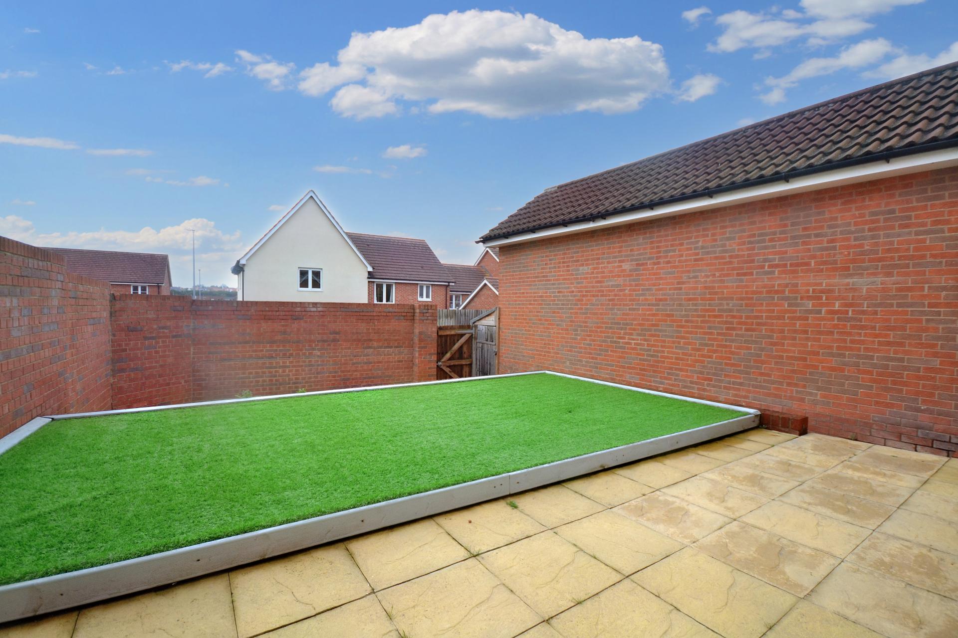 To the rear of the property there is a good sized, walled garden with artificial grass and a paved terrace which is perfect for al alfresco entertaining. There is a gate to the rear which leads to the driveway providing two off street parking spaces.