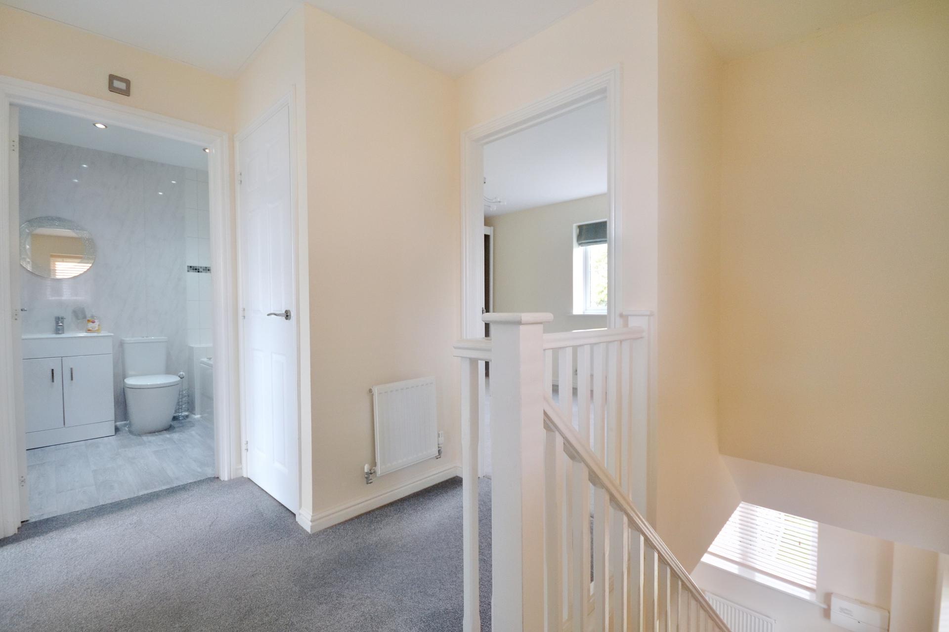 The first-floor landing has doors to adjoining rooms, window to front aspect, airing cupboard and access to the loft space. Bedroom one has window to the side aspect and ensuite comprising corner shower enclosure, WC and wash hand basin. Bedroom two is a good size room with window to the side aspect. Bedroom three has window to the front aspect. The family bathroom comprises panelled bath with handheld shower attachment, wash hand basin and WC
