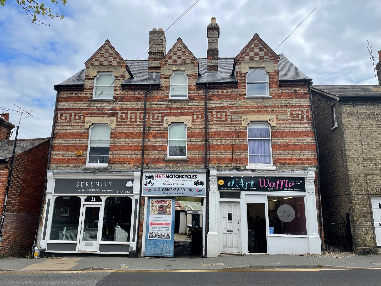 The property comprises a retail unit over basement and ground floor, trading as d'Art Waffle selling waffles, crepes, cakes and ice cream. The first and second floors comprise two residential premises. The rear workshop trades as Berts Motorcycles, a motorcycle workshop.