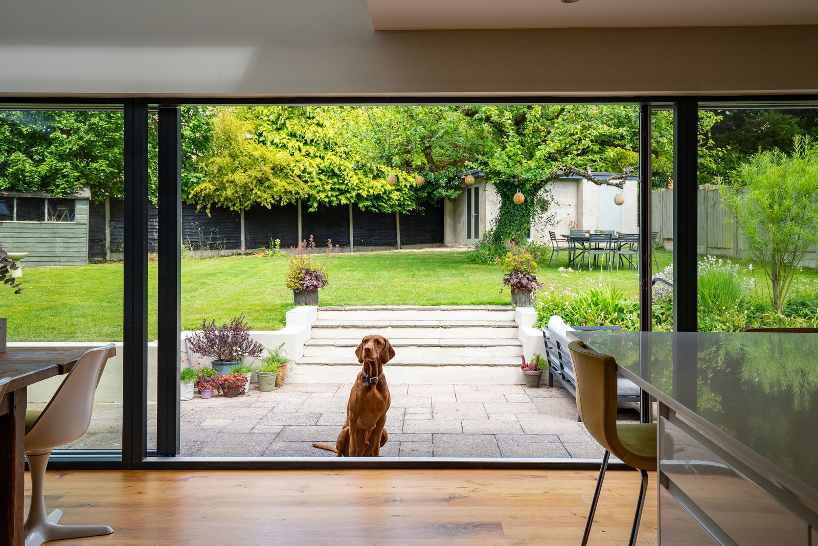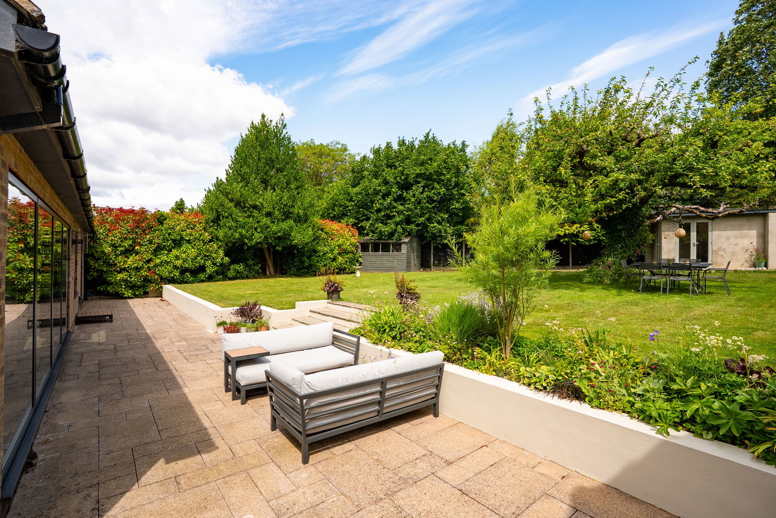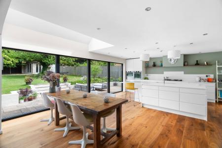 - Impressive open-plan kitchen/dining/living space with garden access