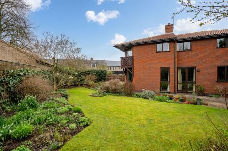 To the front is a driveway providing parking for several vehicles and access to the garage with up and over door and large store room to the rear. There is an attractive landscaped garden laid mainly to lawn with a variety of mature trees and shrubs and timber shed. Paved side access leads to the rear garden with a paved patio area ideal for al fresco dining.