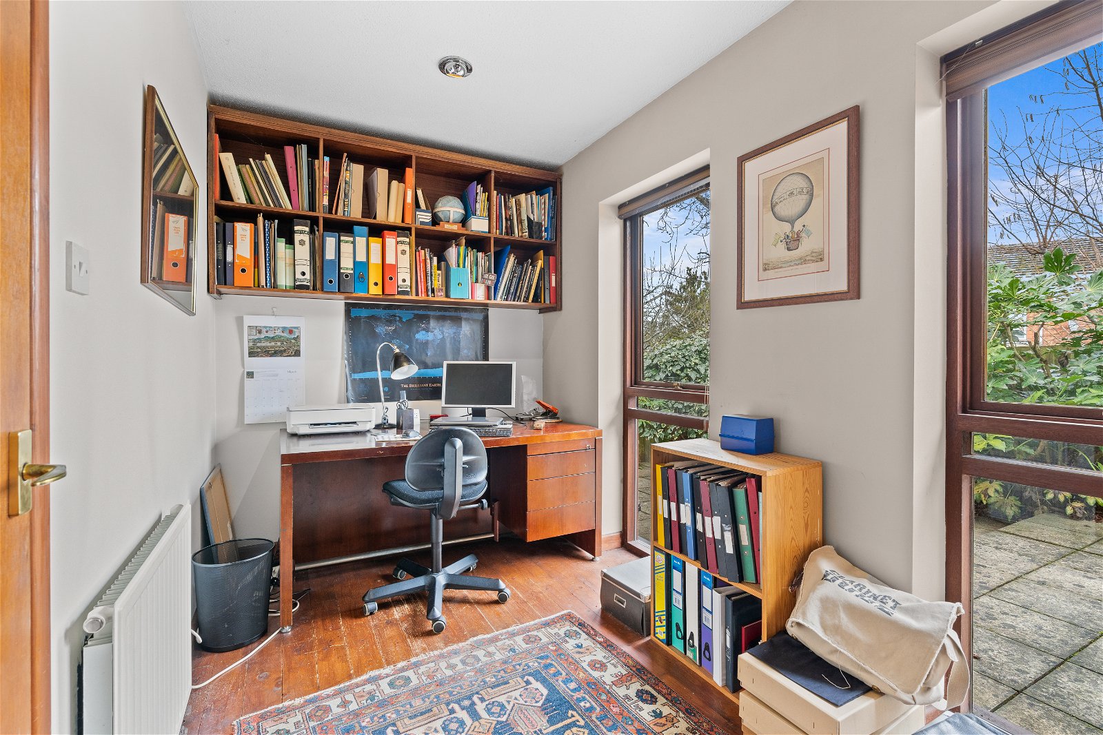 In detail the property comprises of an entrance hall where stairs rise to the first floor, large built in storage cupboard and doors to the adjoining rooms. To the left is a shower comprising shower cubicle, W.C and wash hand basin. To the right is a generous sitting room filled with natural light from several, floor to ceiling windows to front and side aspect and door leading on to the rear garden. A door leads to the dining area with ample space for a dining table and chairs, there is also a door providing access to the garden. The kitchen is fitted with a matching range of eye and base level units with worksurface over and inset sink. Integrated appliances include gas hob with extractor fan over, oven and dishwasher. The utility area is also fitted with a matching range of eye and base level units with worksurface over and sink unit. There is space and plumbing for a washing machine and an opening leads to a breakfast room with door onto a paved courtyard area. The ground floor also benefits from a family room with window to front aspect, door to the garage and door to the study with two windows to rear aspect.