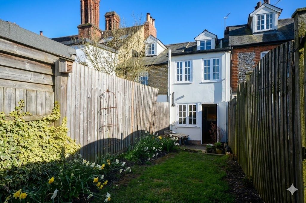To the rear, the property enjoys a private and enclosed garden, offering a peaceful and low-maintenance outdoor space — ideal for al fresco dining, entertaining or simply relaxing. The garden provides a welcome sense of seclusion, rarely found so close to the centre of town, and complements the house perfectly as a manageable yet attractive outdoor setting.