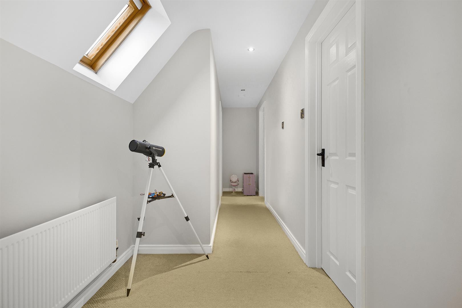 Landing - Carpet, large window to rear, Velux window to front, recessed spotlights, access to linen press with excellent storage options.