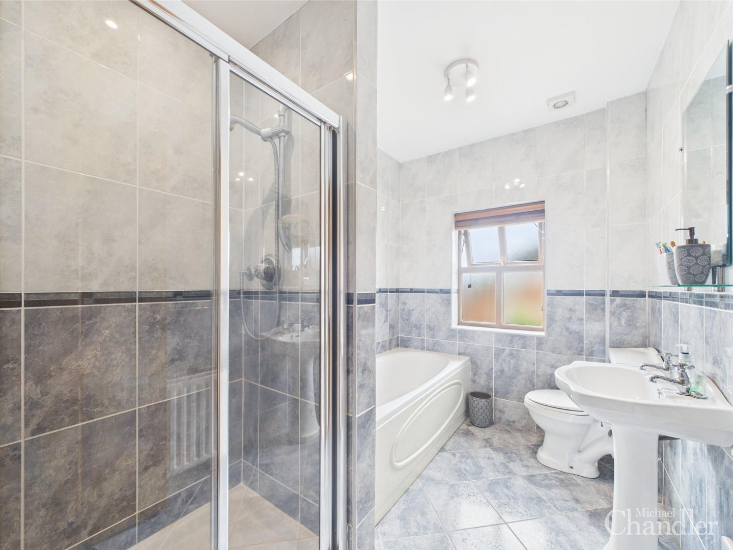 Contemporary family bathroom complete with a four piece suite including separate bath & shower