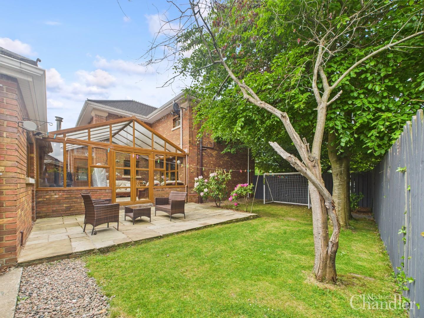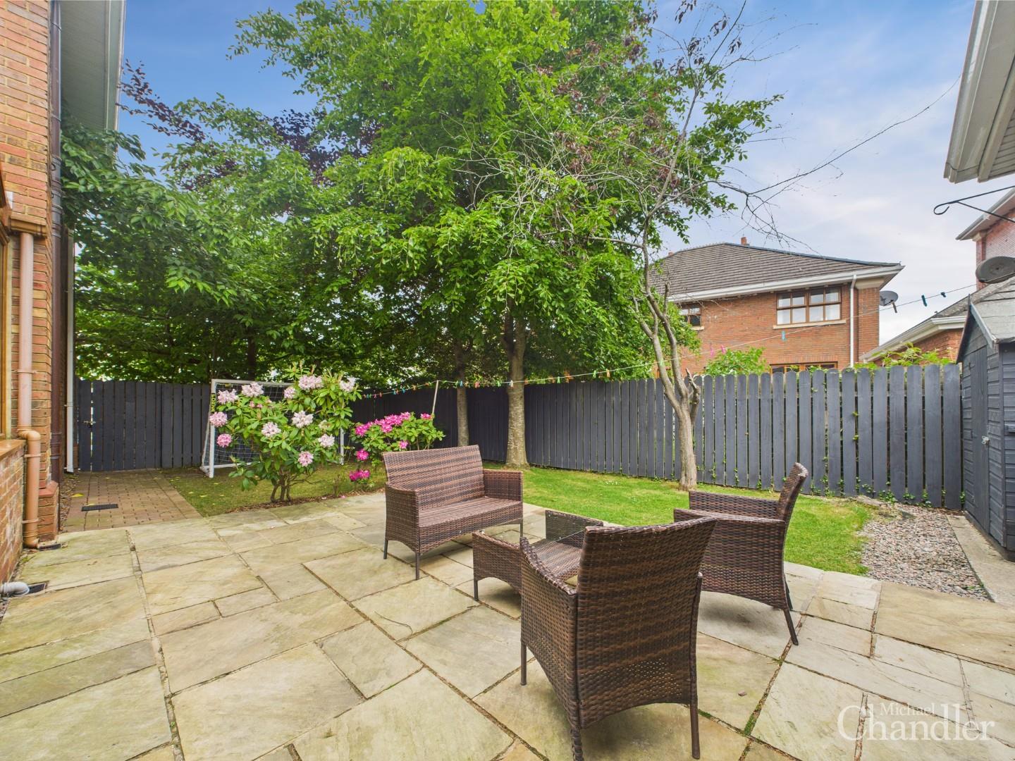 Fully enclosed rear garden laid in lawn with patio area - perfect for socialising with friends & family