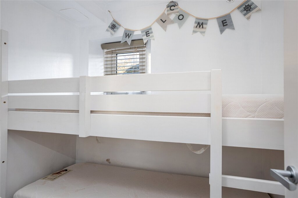 The property benefits from its own entrance door, which leads into the hallway, where doors open to two bedrooms and the newly refurbished family shower room. Outside, there is an allocated parking space and access to the communal garden.