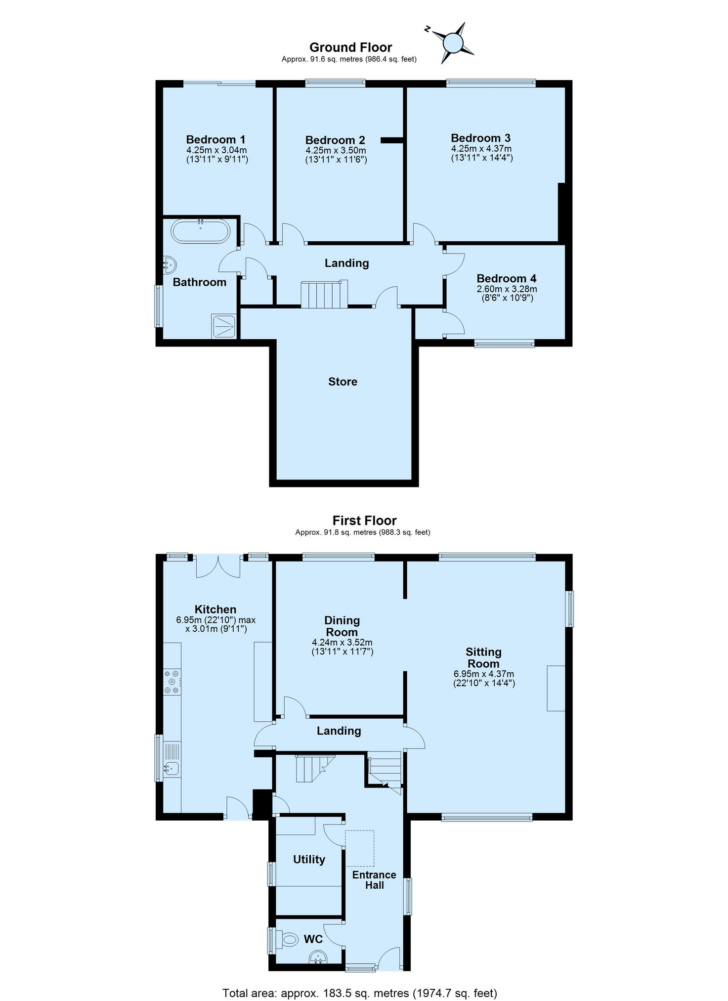 Descending the staircase to the ground floor, you’ll find four generously sized bedrooms, a family bathroom, and access to a large storage area. Each bedroom offers comfort and versatility, making this home ideal for a growing family or those seeking additional guest accommodation.