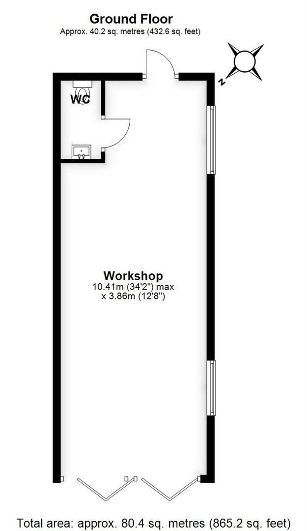 Workshop - Double doors to front elevation and a door to the rear, windows to side, power and light. Inset spotlights. Separate WC with wash hand basin.