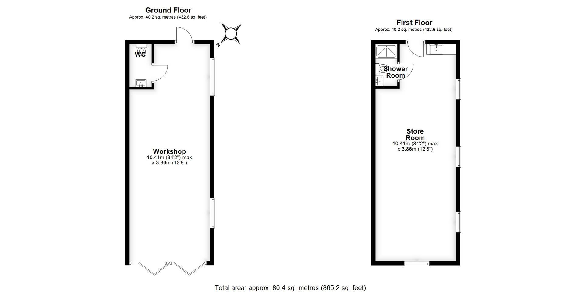 A detached two storey building. Ground floor workshop and vaulted first floor room with shower room.