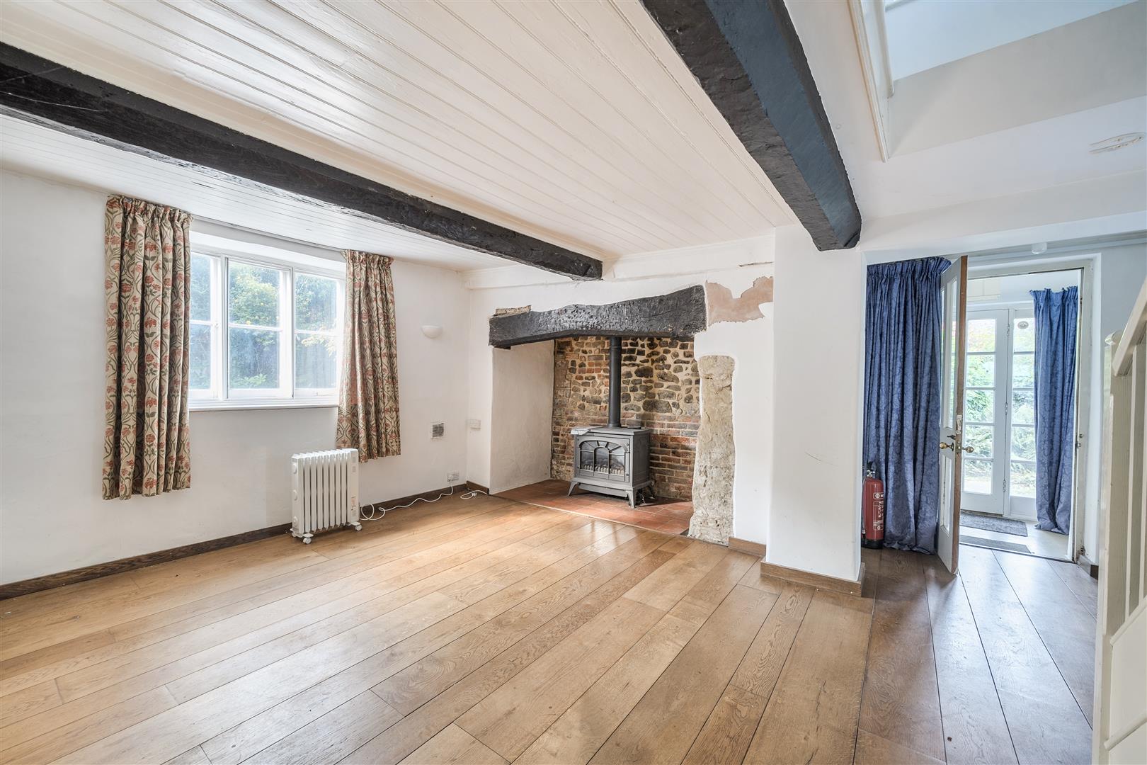 The cottage is reached via a covered entrance porch with outside light and glazed door into the hallway which then opens to a cloakroom with low level WC and wash hand basin with cupboard below. The sitting room features a magnificent inglenook fireplace with bressumer beam, bread oven and LPG gas-fired stove on a slate hearth. There are exposed ceiling beams, oak flooring and stairs to first floor with cupboard beneath. A glazed door leads to the family room with windows to two sides, oak floor and door to garden. The kitchen/dining room has a tiled floor with two-oven Aga, ceiling beam, wooden work surfaces with cupboards and drawers beneath, wall mounted cupboards, single drainer ceramic sink with mixer tap, built-in oven with four ring gas hob over, space and plumbing for dishwasher, breakfast bar, door to rear porch, door to garden. Off the kitchen is a utility room/larder with sink and space and plumbing for a washing machine. On the first floor is a large double aspect bedroom with ceiling beam, wooden floorboards, two built-in wardrobes. Off the landing is a bathroom with panel bath, WC and hand basin, cupboard housing lagged hot water tank and immersion heater, further shelved cupboard. There is a further double aspect bedroom wash basin on this floor. Stairs lead from the landing to the second floor where there are two further bedrooms with wooden floorboards, exposed beams and lovely views to the rear. There is a shower room with an electric shower, WC , hand basin and heated towel rail.