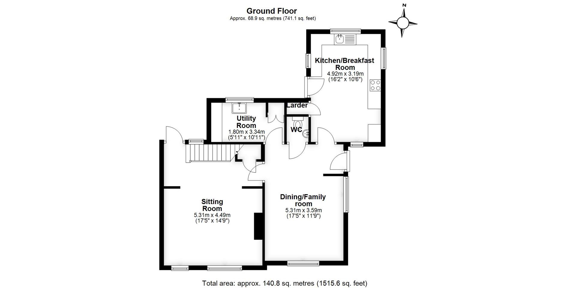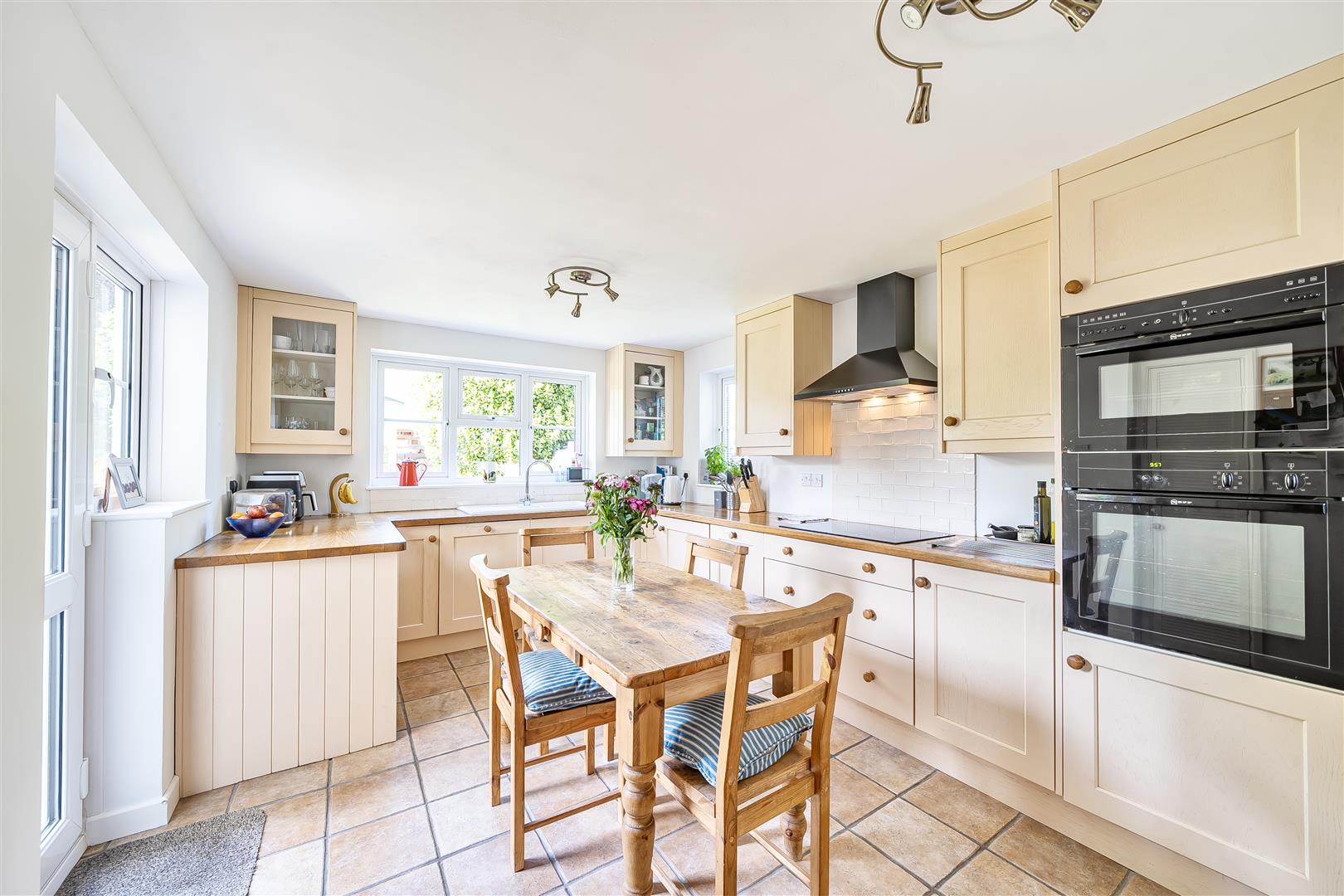 Kitchen/Breakfast Room - Fitted with cream fronted base and wall units with solid oak work surfaces over, sink and drainer under window to rear, integrated electric oven, grill, hob and extractor, fridge, freezer and dishwasher, space for table and chairs, tiled floor, larder cupboard windows to front, side and rear, floor mounted oil fired boiler.