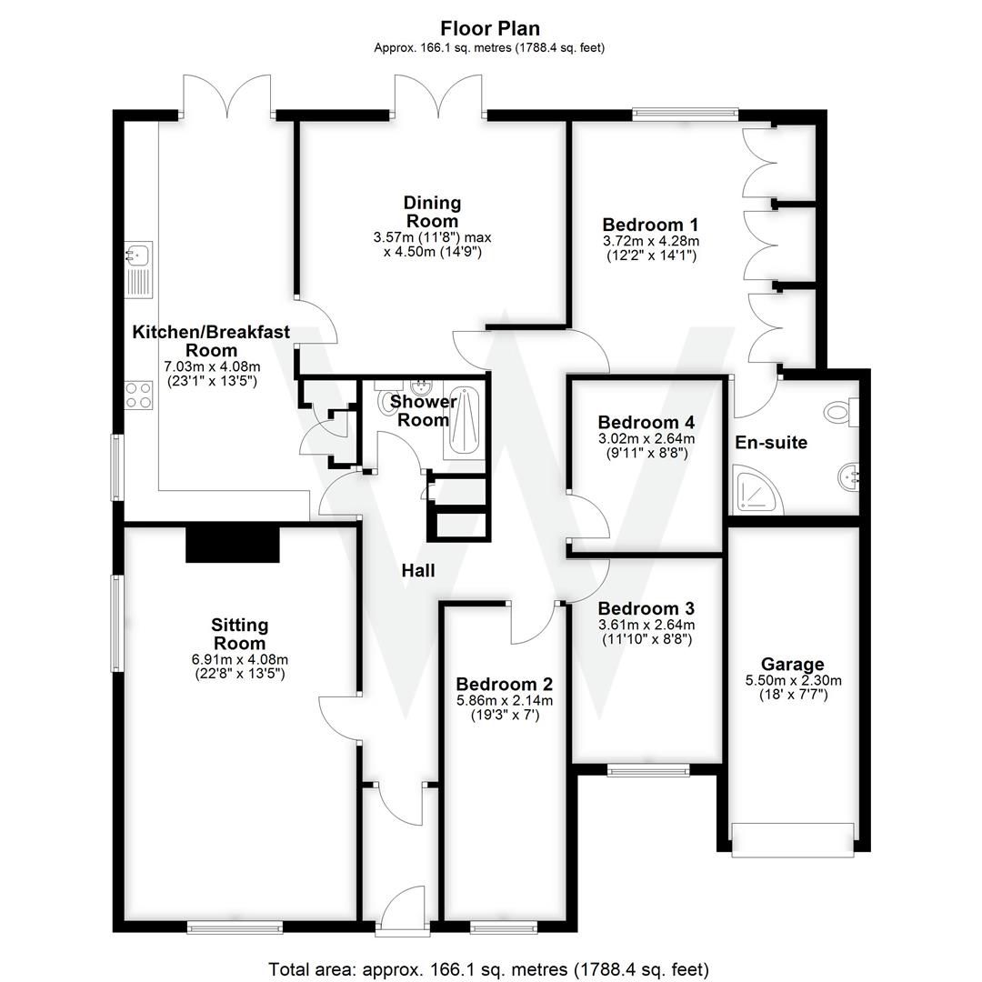There is a dining room, again with French doors in to the garden, a shower room and there are four bedrooms with an en suite shower room to the master bedroom. Further benefits include PVCu double glazing and gas central heating.