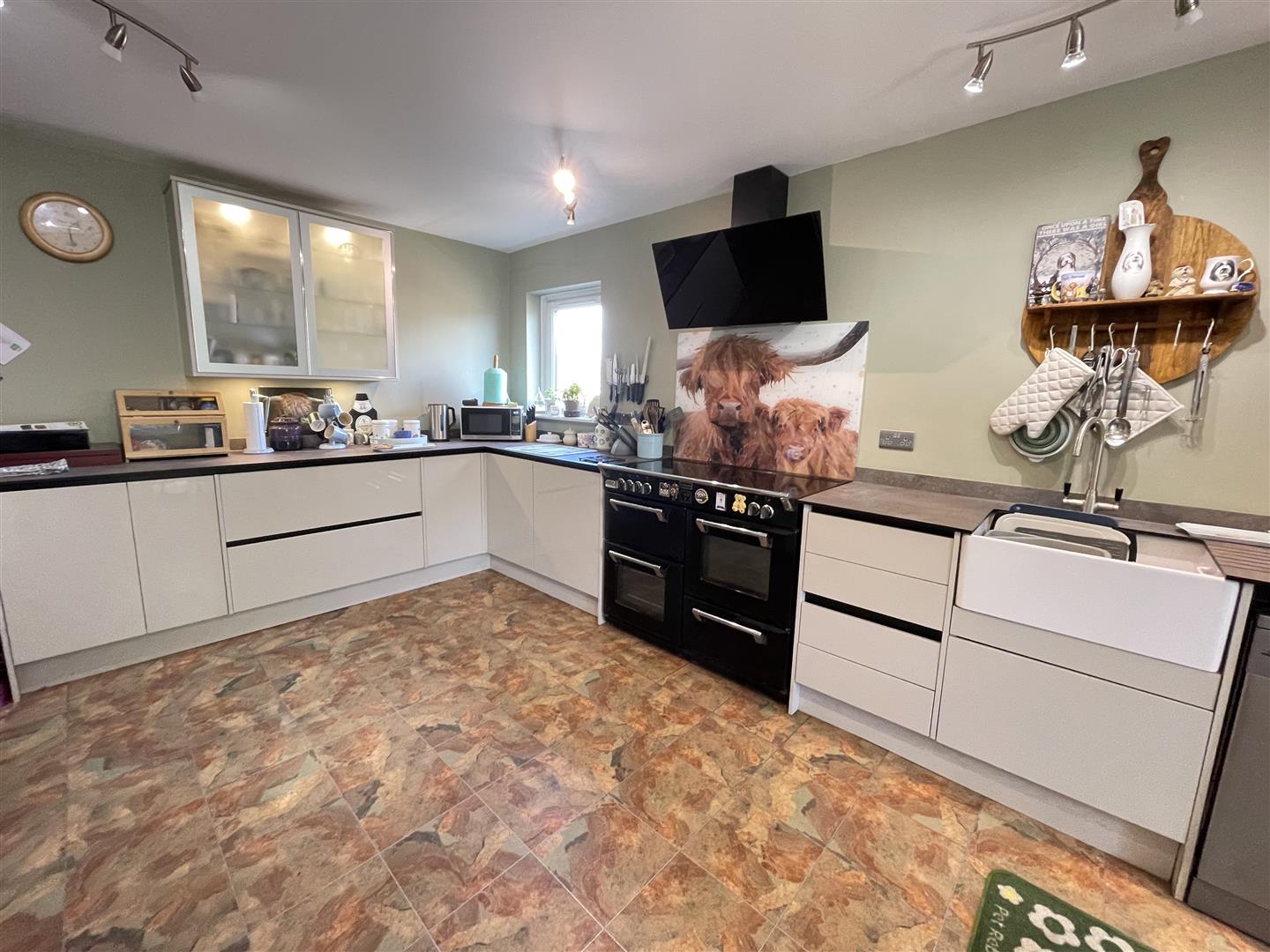 There is an entrance hallway with fitted storage cupboards and a front extension means there is a large sitting room. There is a good size L-shaped kitchen/breakfast room which has been refitted with an excellent range of units and a large larder cupboard and there is space for a Rangemaster style electric oven and all the usual appliances. There is also space for a table and chairs and there are French doors leading out on to the garden.
