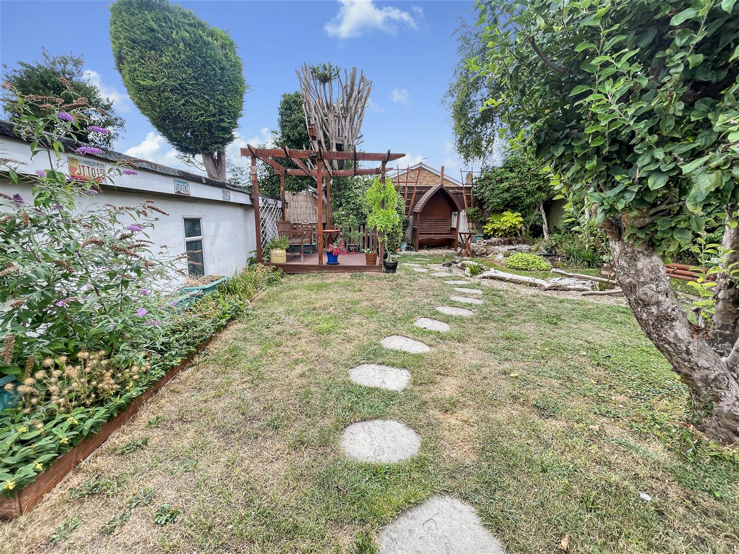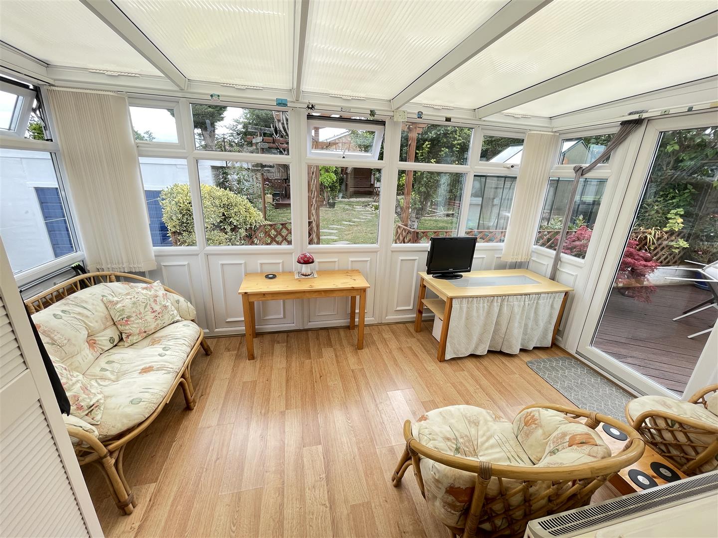 An extended semi-detached bungalow offering spacious and flexible accommodation in an elevated location in this small cul-de-sac on the edge of the village. It offers a good outlook over the neighbouring area, a private garden and two garages at 7 metres with a pit and 5 metres long. Offered In good order throughout
