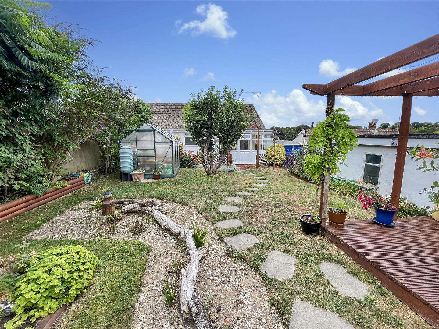 An extended semi-detached bungalow offering spacious and flexible accommodation in an elevated location in this small cul-de-sac on the edge of the village. It offers a good outlook over the neighbouring area, a private garden and two garages at 7 metres with a pit and 5 metres long. Offered in good order throughout, together with double glazing and electric heating, this is a property that merits an internal inspection to fully appreciate.
