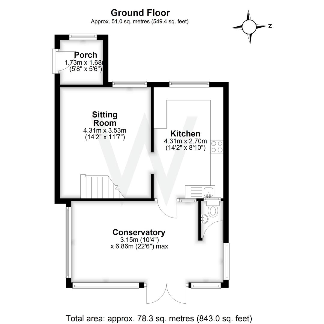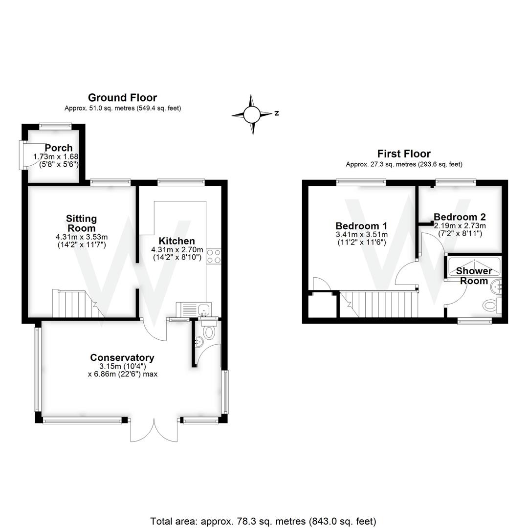 The accommodation comprises an entrance porch which also provides useful storage and a sitting room with stairs leading to the first floor. There is a kitchen with a good range of units, a breakfast bar and space for all the usual appliances. This leads to a large conservatory extension within which there is a cloakroom. French doors lead out on to the garden which enjoys a southerly aspect and has both patio and lawned areas. It also has a covered area to the rear and side of the house which provides useful storage or can be used for extra parking, in addition to the driveway to the side. On the first floor are two bedrooms with the main bedroom having a storage cupboard which also houses the gas boiler and the second bedroom has a fitted wardrobe. There is also a shower room which has a large shower cubicle. The property further benefits from PVCu double glazing throughout and gas fired central heating.
