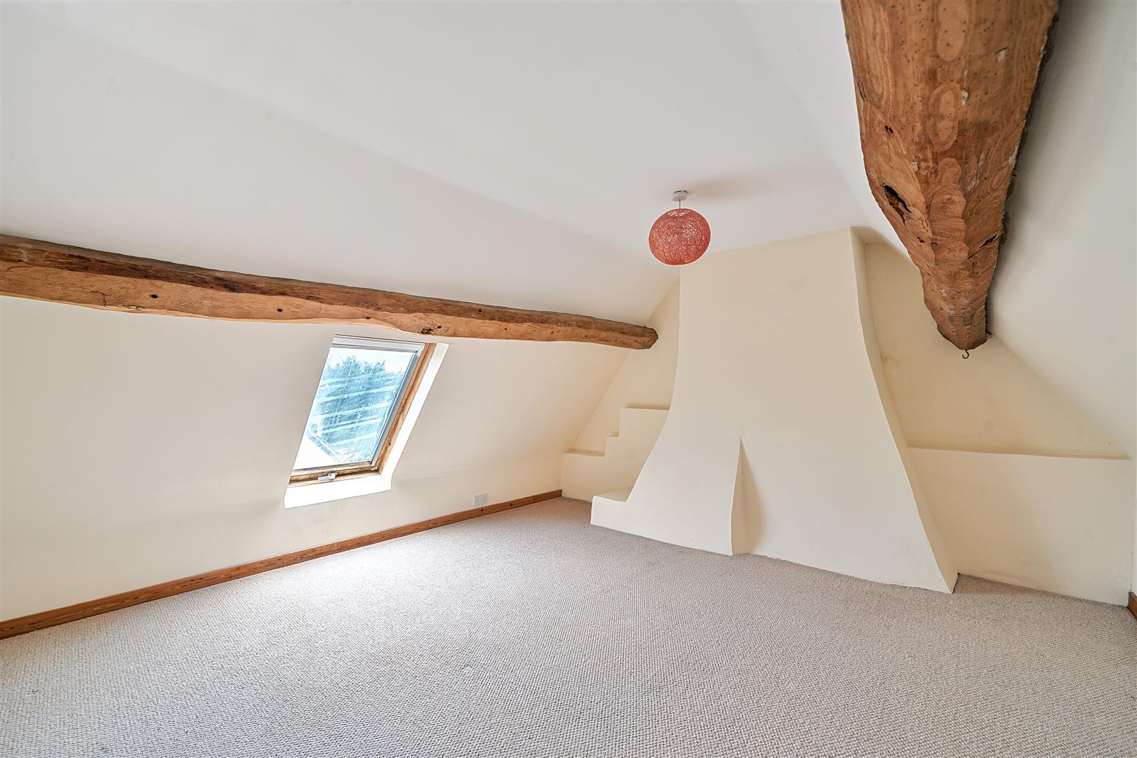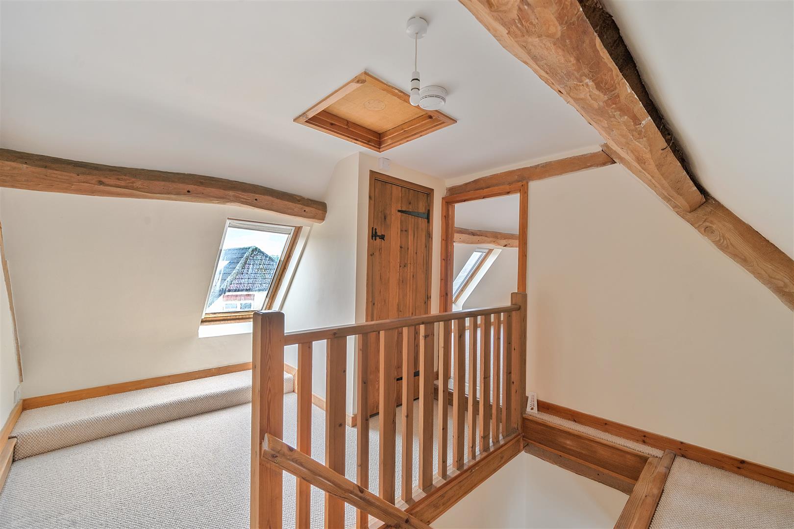 An entrance porch leads in to the hallway which has stairs to the first floor and oak flooring. The sitting room has a brick fireplace, oak flooring and door to the family room. This has a lovely outlook over the rear garden with double doors leading out. The dining room has a large inglenook with bressumer beam over and bread oven door, oak flooring and from here a door opens into the study. The kitchen features a vaulted ceiling and storage platform. There is a tiled floor, worktops with base and wall units, appliance space and gas cooker. A door leads to the rear lobby with utility room which houses the gas fired boiler and also the cloakroom.