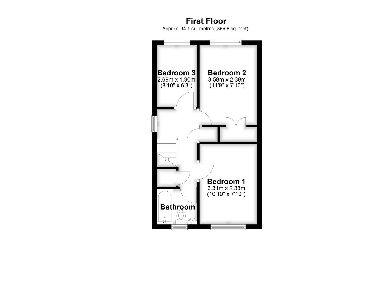 On the first floor are two double bedrooms, both with fitted/built in wardrobes and a further single bedroom which again has fitted furniture. The bathroom has fully tiled walls and floors and a strip light/shaver point. There are far reaching views from the front bedroom towards the city.