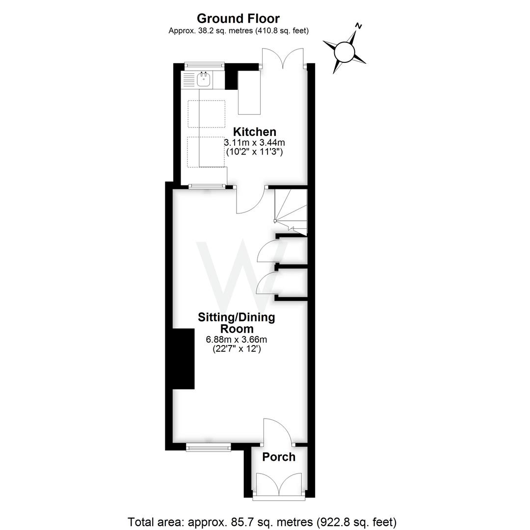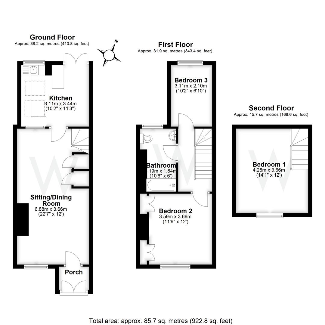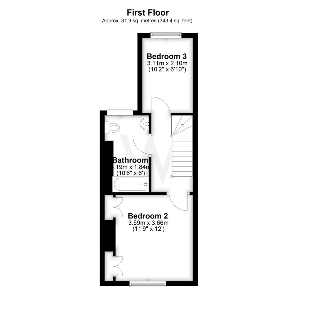 On the first floor, there are two bedrooms with the double bedroom having fitted wardrobes and inset shelving. The bathroom has been refitted to provide a contemporary white three piece suite and a storage cupboard is fitted within the chimney breast. Features of the house include sash windows and gas fired central heating.