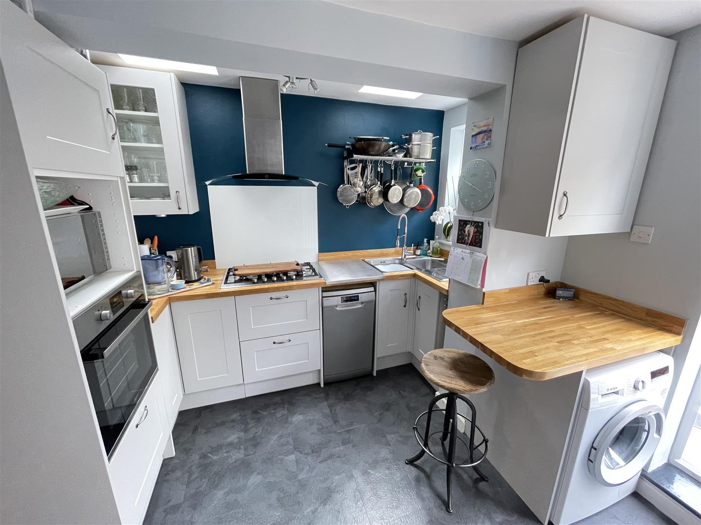 The property is presented in superb order throughout. On the ground floor, the property has been extended to provide a useful porch area with a door leading in to the sitting/dining room. This has fitted shelving, wood effect flooring, an electric fire with a surround, space for a table and chairs and extensive understair storage cupboards. The kitchen has been extended and provides a good range of units with timber work surfaces over, a double sink and drainer, an integrated electric oven and five ring gas hob and space for both a washing machine and dishwasher. There is also a breakfast bar and French doors leading on to the garden.