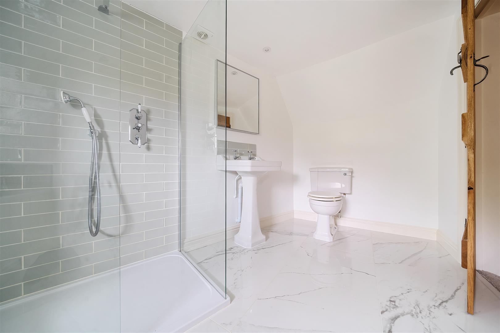 Bathroom - Beautiful bathroom with suite of panel bath with shower attachment and mixer taps, wc, hand basin and glass shower cubicle with thermostatic mixer and rainfall head. Porcelain flooring, part tiled walls, period towel rail.