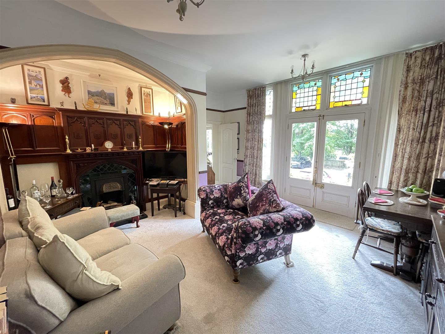 This wonderful, period house was converted in 2003 into a number of spacious and character apartments. This apartment is situated on the ground floor and has a host of interesting period features. These include high ceilings, a cast iron fireplace with timber panelling, some stained glass windows and part of the property is formed from an attractive and predominantly glazed turret.
