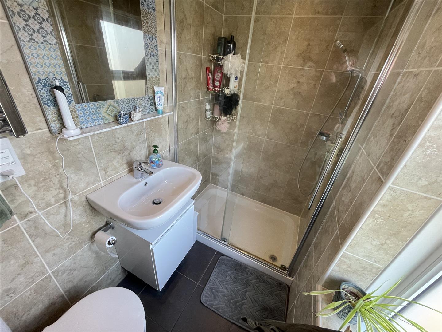 This split level property has an entrance hallway with an attractive tiled floor and an understair cupboard. On the first floor is a sitting room with a window to the front elevation. The kitchen has an attractive range of cream fronted base and wall units with granite work surfaces and an integrated fridge/freezer, electric oven and hob with an extractor over. There is also space for a washing machine. There is a shower room which has fully tiled walls and floor, a white three piece suite and there is a shaver point and a heated towel rail.