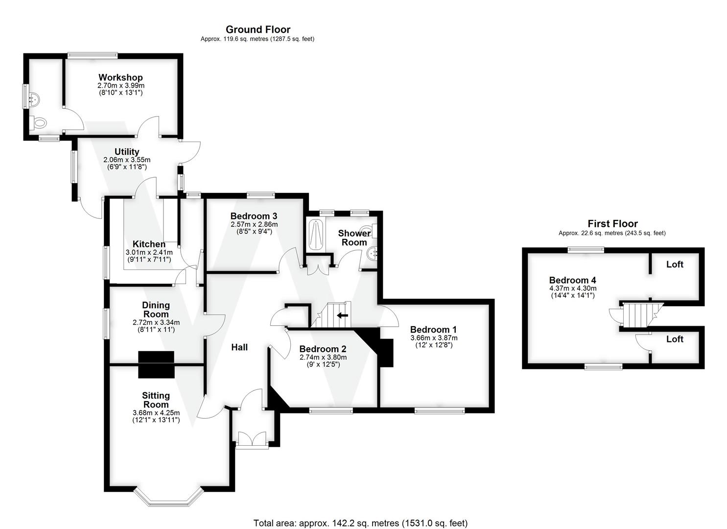 There are three bedrooms and a shower room on the ground floor with a fourth bedroom and storage areas on the first floor.