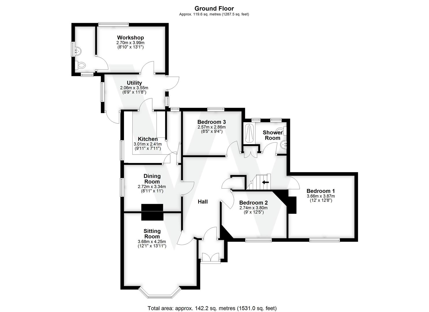 Currently, the accommodation comprises an entrance hallway, a sitting room which has a bay window and an open fireplace. There is a dining room, a kitchen, a utility room and a workshop with an adjoining WC.