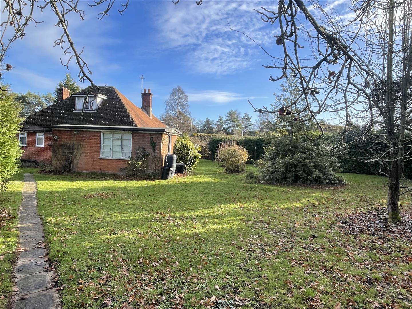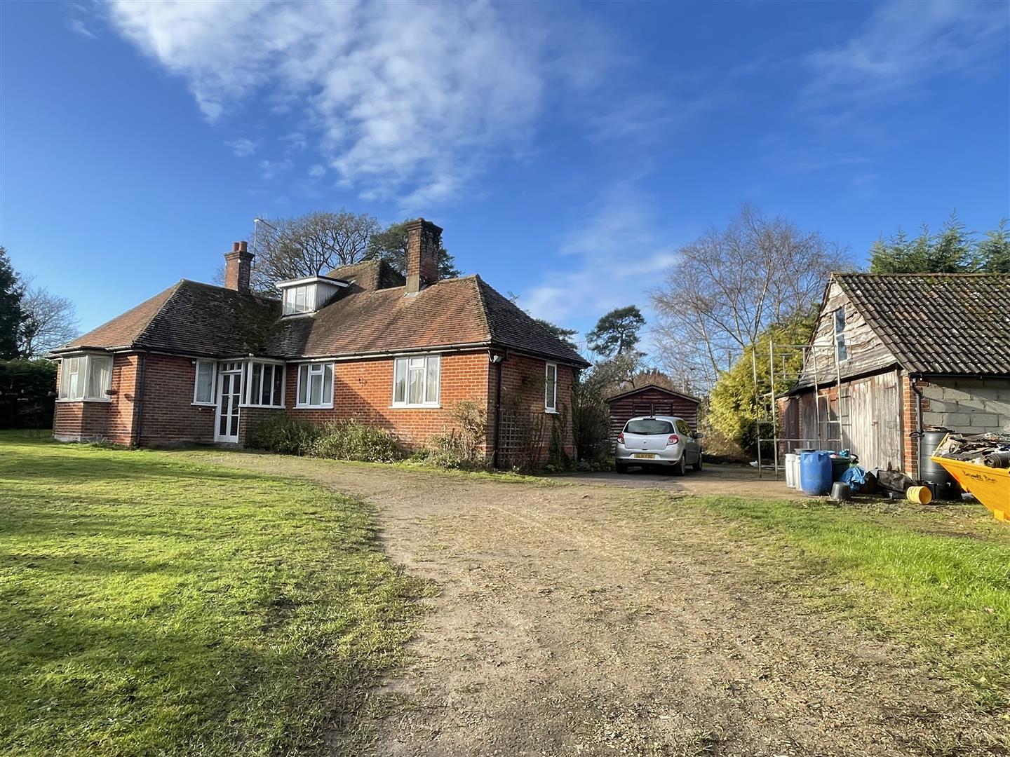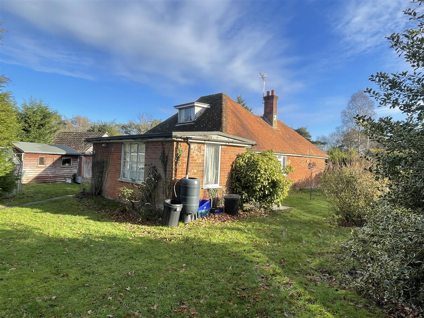 The property is a detached chalet bungalow, centrally set in a plot of approximately 0.45 acres, which is in need of complete renovation which offers an excellent opportunity to alter and extend, subject to planning. It is set in a secluded location at the end of Grimstead Road and accessed via a gravel track. The property is offered with no onward chain.