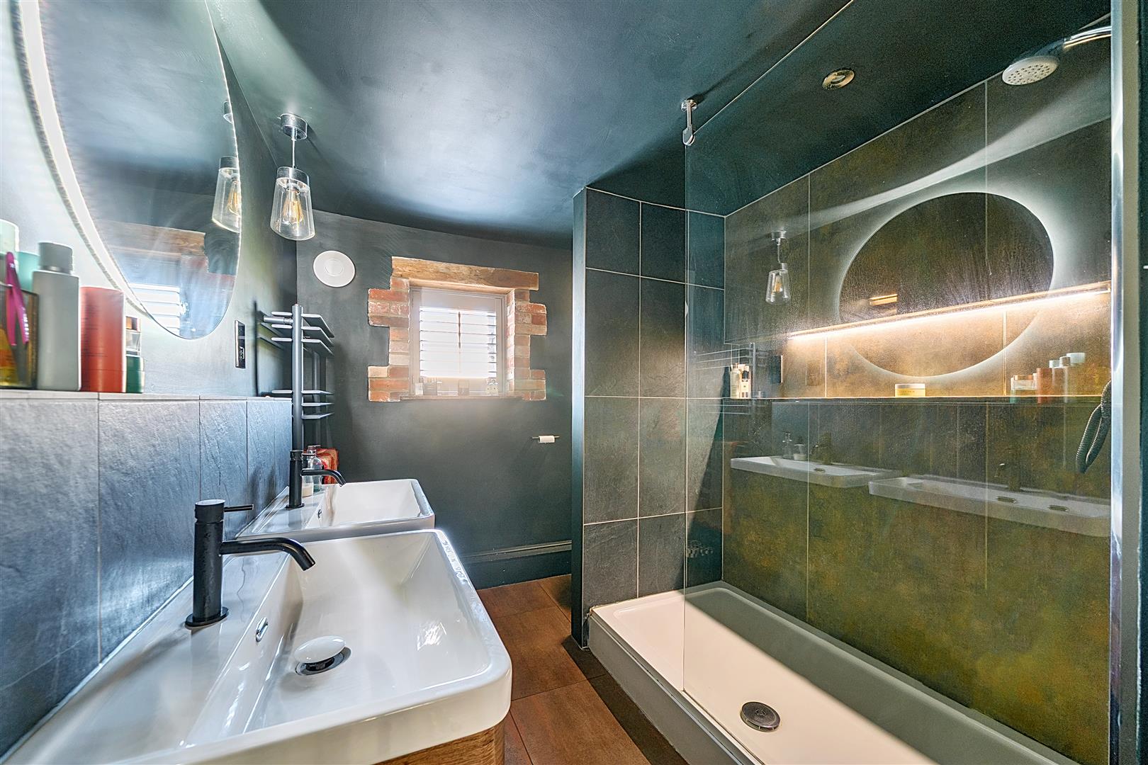 The solid wood front door leads into the dining room which has stairs to the first floor with storage area beneath. A central fireplace has access on both sides to the double length sitting room with door to garden, fireplace and wood burning stove. Both reception rooms have an abundance of exposed timbers and brickwork. The 24 foot long Kitchen has been recently refitted with a terrific range of work surfaces with matching base and wall mounted cupboards and drawers, built in appliances, island and breakfast bar. Large bifold doors open the room into the garden and create wonderful entertaining space. Beyond the kitchen there is a breakfast room with doors to the garden. A door leads through to the study/bedroom 3 which has it's own shower room and from here a door leads to the residue garage/ workshop which offers very useful storage and wheelie bin space and doors onto North Street.