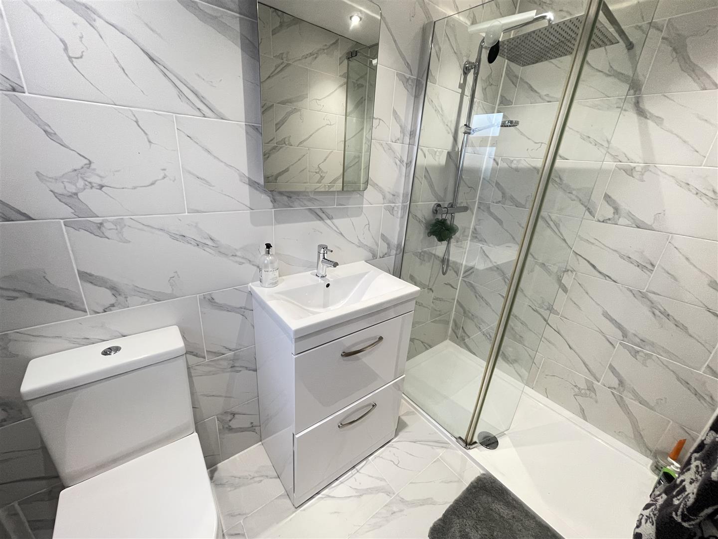 There is a ground floor shower room which has been refurbished with a contemporary white suite that includes a large rainfall shower and storage under the basin. The walls and floor are fully tiled.