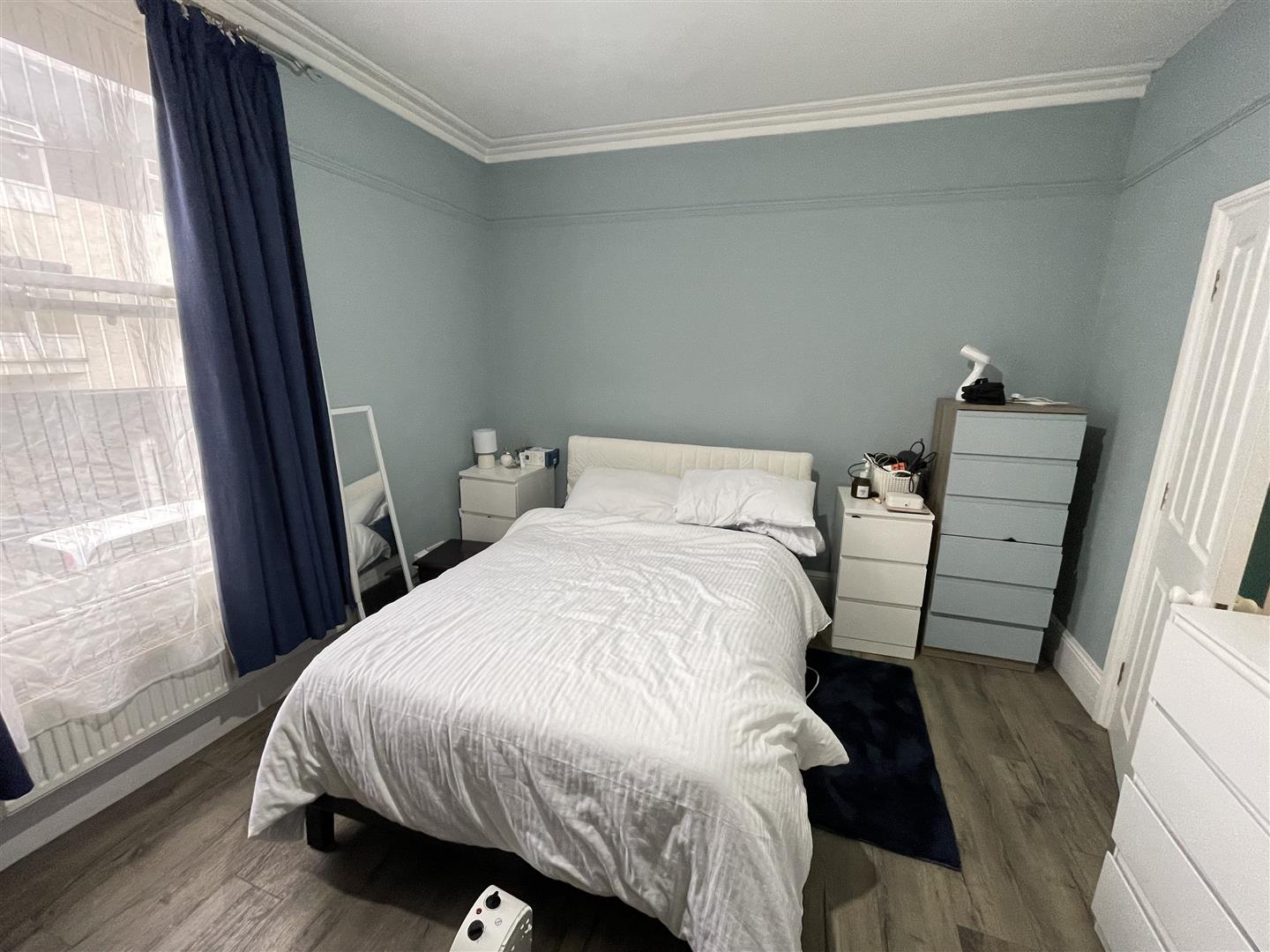Bedroom - Sash window to front, radiator, fitted wardrobe, large timber fireplace surround.