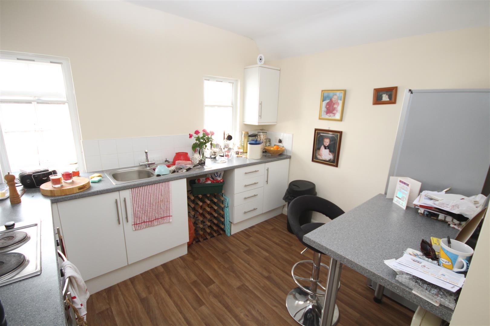 The property is accessed from the rear of the building via a communal hallway shared with one other flat with the stairs leading up the first floor. The private hallway has doors to all rooms and on the right is the kitchen/breakfast room which has a range of work surfaces with inset one and a half bowl stainless steel sink unit, four-ring electric hob with electric oven below and cooker hood over, wall and floor cupboards, plumbing and space for washing machine, breakfast bar, secondary glazed windows and electric heater. On the left of the hall is the double aspect sitting room which has secondary glazed windows and an electric heater. At the end of the hall is a double bedroom with secondary glazed window and electric heating. The bathroom has a white suite of panelled bath with thermostatic mixer shower over, low level WC and wash-hand basin. On the landing there is a communal storage cupboard which houses the hot water tank.