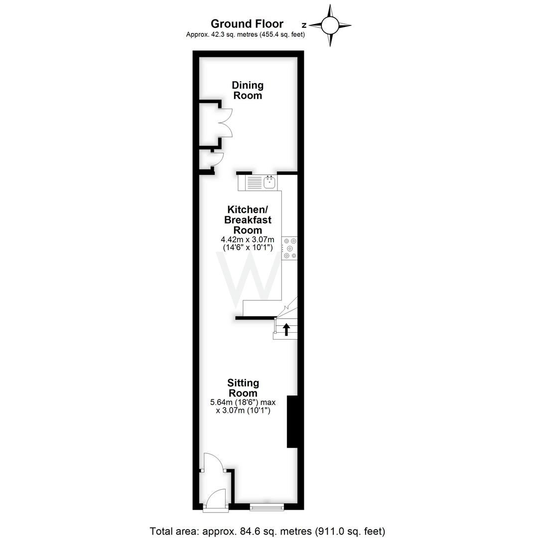 A three-bedroom end-of-terrace house with no onward chain. Cul-de-sac location. Garden with parking potential. No chain.