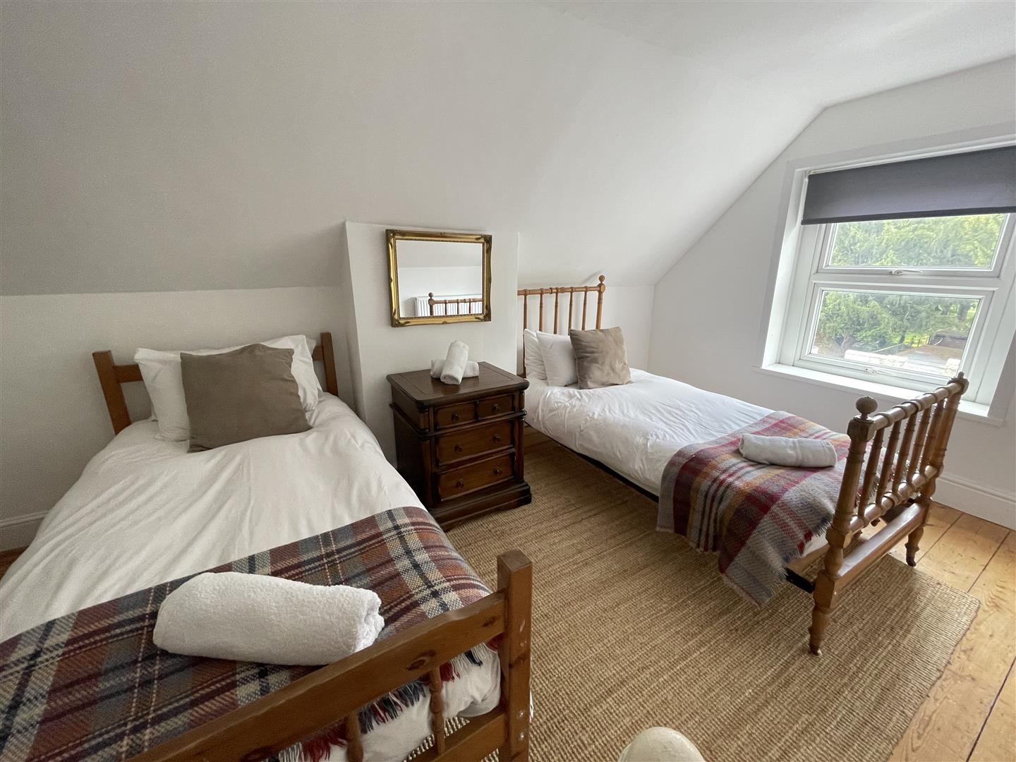 The first floor hosts two well-proportioned bedrooms, including the main bedroom with fitted wardrobes, alongside a stylish refitted shower room with contemporary fittings and fully tiled walls and floors. A third double bedroom occupies the top floor, with elevated views towards Salisbury Cathedral spire from the front-facing rooms.