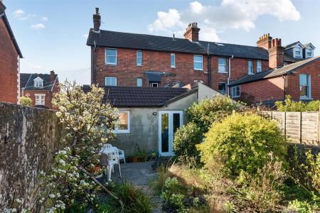 Outside - The garden is enclosed by walls and timber fencing with paved sitting areas, flowerbeds, mature shrubs and pathway to rear where there is a single parking space behind an electric up-and-over door. Outside light, water tap.