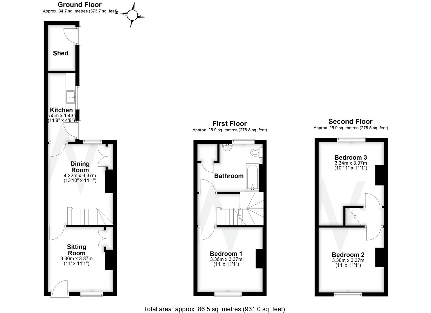 On the second floor are two further double bedrooms. There are feature cast iron fireplaces in all the bedrooms and there are lovely views from the front bedrooms over Wyndham Park. Further benefits include PVCu double glazing, gas central heating and a paved, courtyard garden to the rear where there is a useful storage area which also houses the washing machine.