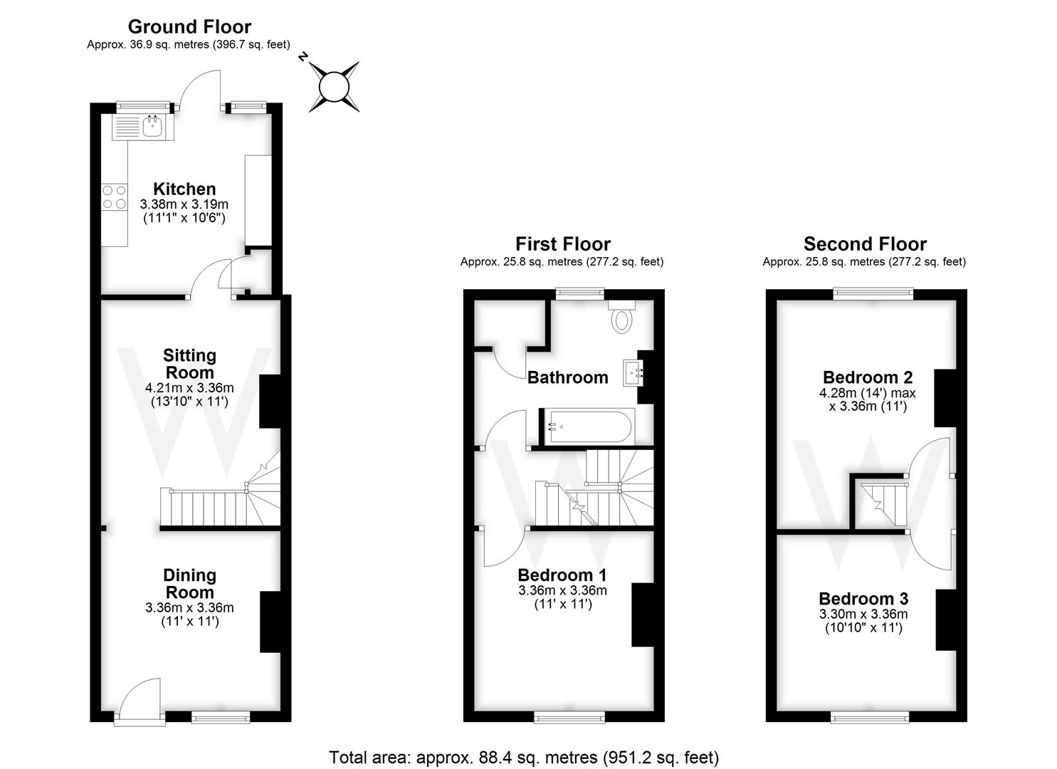 On the second floor are two further double bedrooms with an elevated view over the park from bedrooms one and three. To the rear of the house is a low maintenance courtyard garden with an outside tap, light and a rear access gate. Benefits include some character features including exposed floorboards and there is PVCu double glazing, gas fired central heating. The property has been recently been re-roofed.