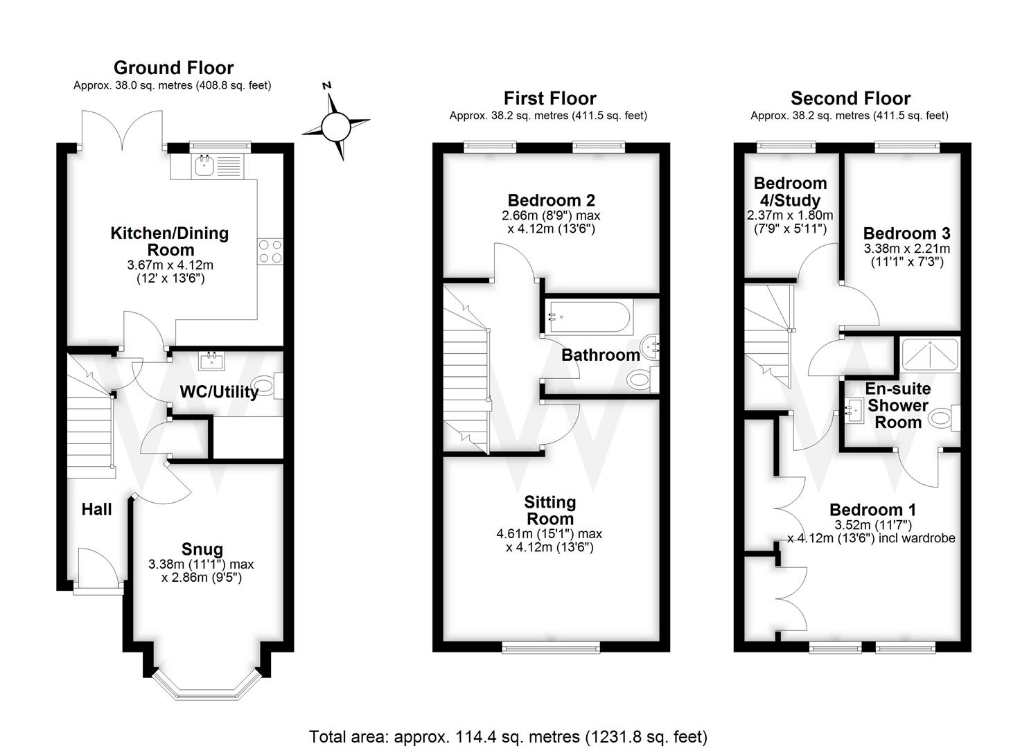 - Modern end of terrace townhouse over three floors