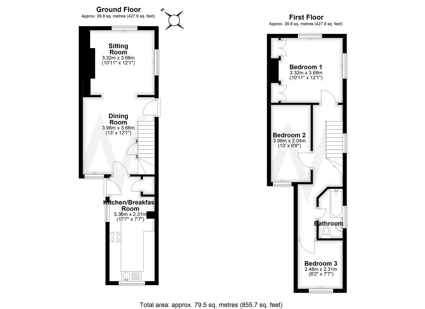 On the first floor, the main bedroom has a double aspect and has fitted wardrobes. There are two further bedrooms with bedroom three overlooking the rear garden. The bathroom has a white three piece suite with a shower over the bath.