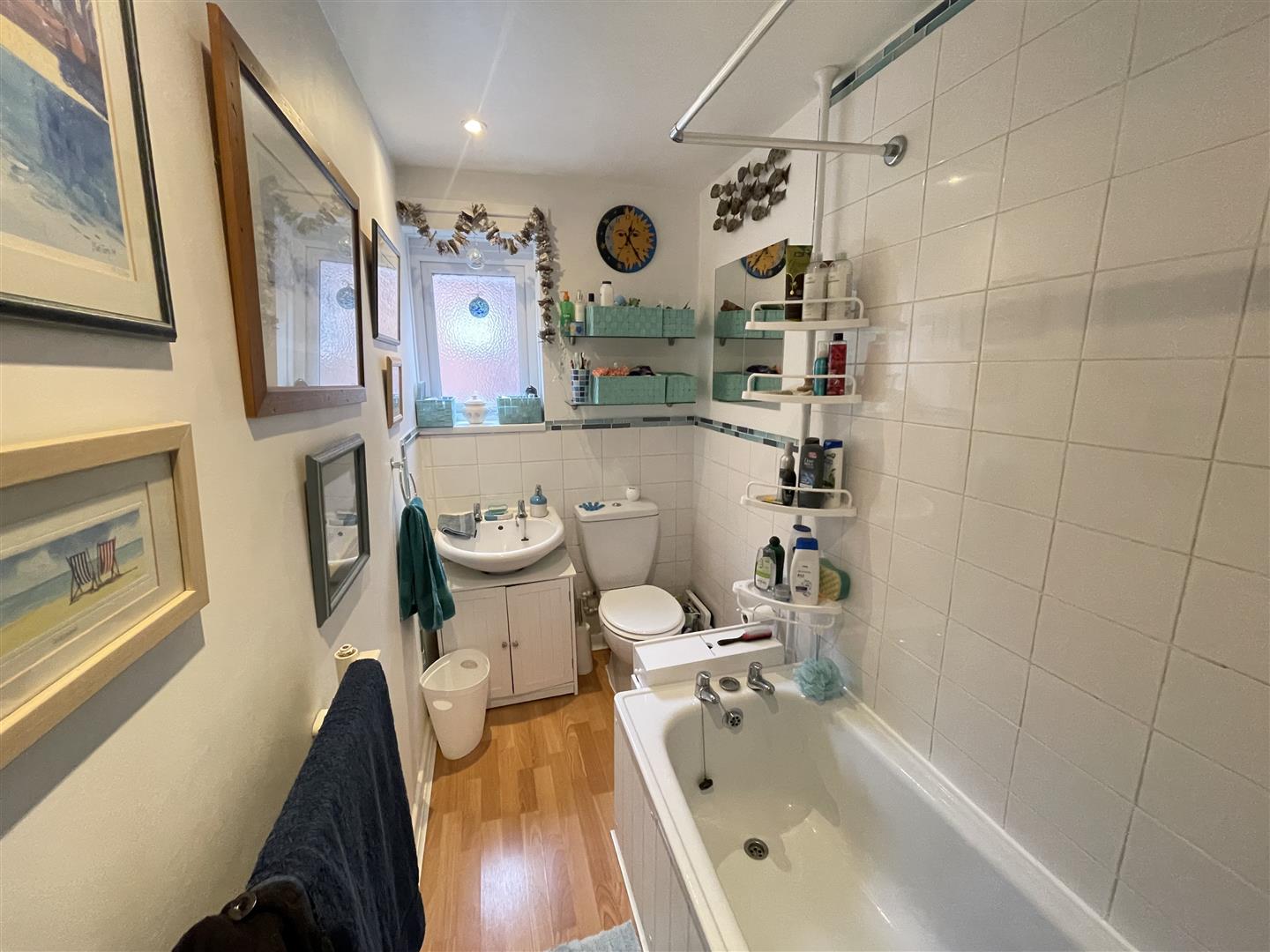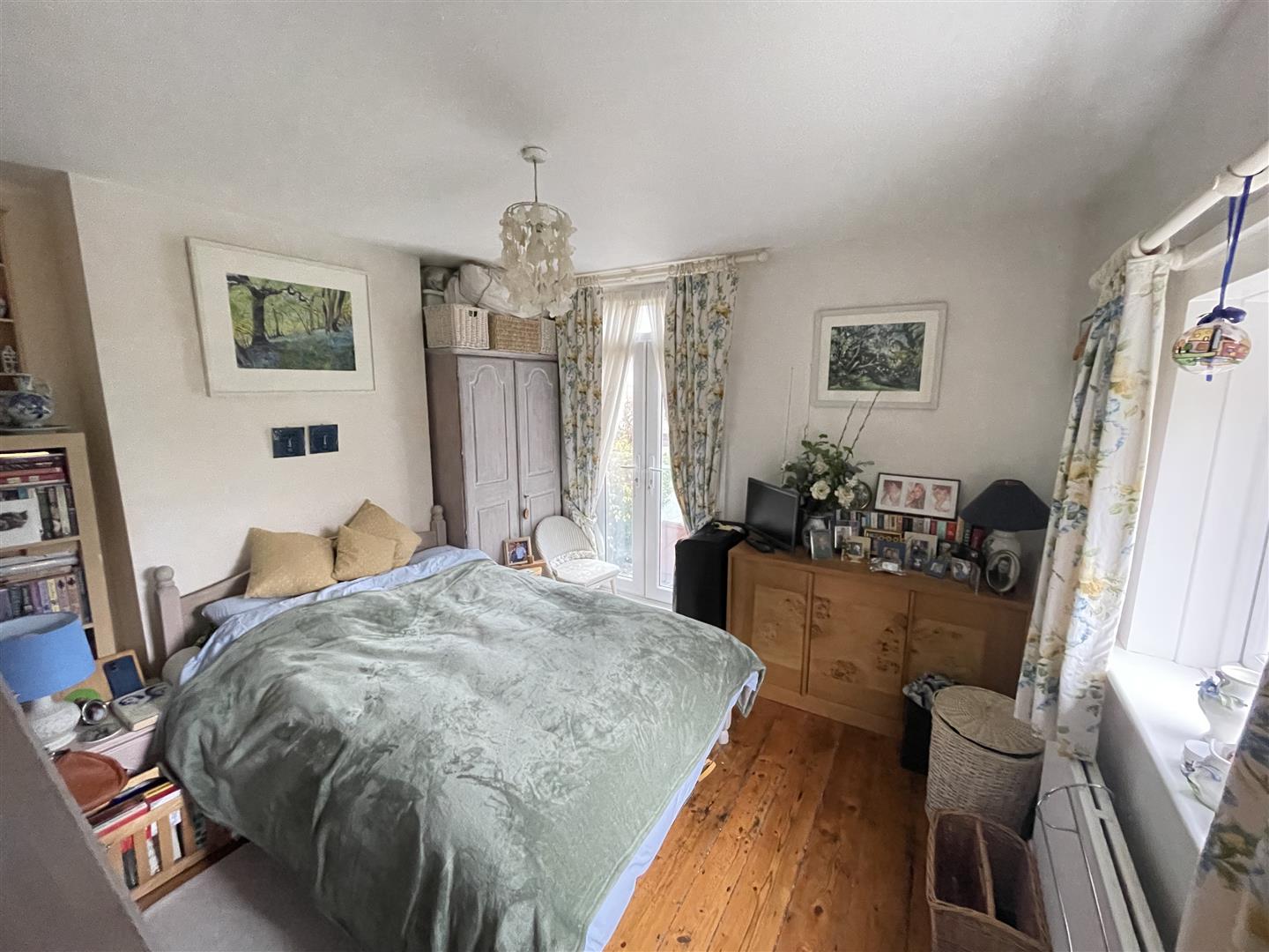 On the first floor the main bedroom has a double aspect with attractive French doors and glazed Juliette balcony to the front elevation and exposed floorboards. There is also a single bedroom and a bathroom which has a white suite with a hand held shower over the bath, part tiled walls, inset spotlights and a heated towel rail.