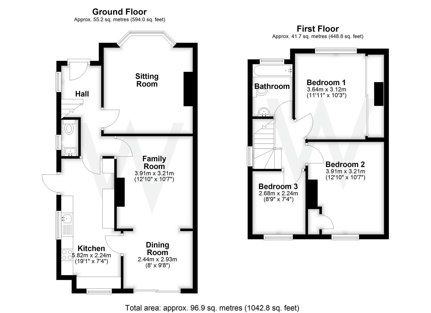 The accommodation comprises an entrance hall with an understair cloakroom. The sitting room has an attractive bay window and a stone fireplace and hearth with an inset coal effect gas fire. The family room has a tiled fireplace with a further coal effect gas fire and it extends through to a dining area with sliding doors providing access to the garden. The kitchen has an extensive range of units with an integrated electric oven, hob and extractor with space for further appliances.