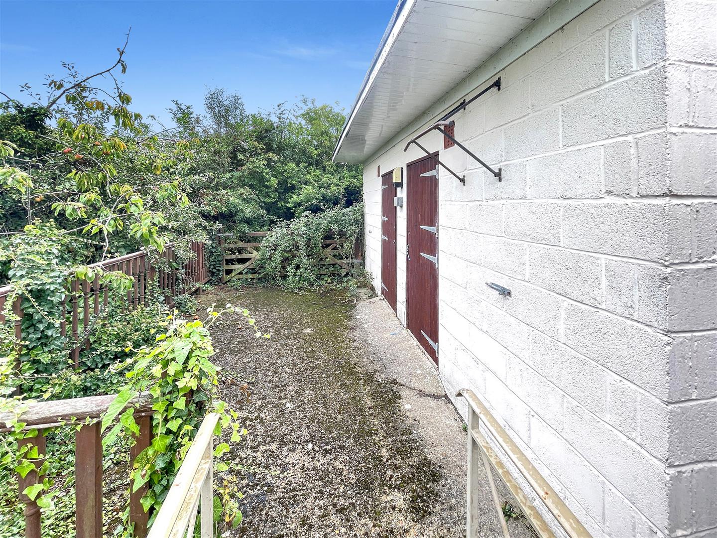 The bungalow is set back from the road and reached via it's own tarmacadam driveway with five bar gate. A covered walkway leads to the entrance porch with a half glazed door into the hall. Here there is a hatch to the loft space and doors to all rooms. The bedrooms are all doubles with a wardrobe in bedroom1. The bathroom has a white suite together with an electric shower over the bath and an airing cupboard. The kitchen has a larder cupboard and a good range of work surfaces, cupboards and drawers, space and plumbing for washing machine, one and a half bowl sink unit, built in oven, hob and extractor, tiled walls. The extended sitting room has a triple aspect to take advantage of the incredible views and has a door onto a raised viewing platform. Steps down lead to a large decking area with railing. Beneath the bungalow is a large workshop measuring 6.18m x 1.37m and three garages with up and over doors. There is a large parking area. Further steps lead down to the garden which is lawn with shrubs and trees and here there are two stables measuring 3.03m x 3.40m and 3.09m x 3.40m.