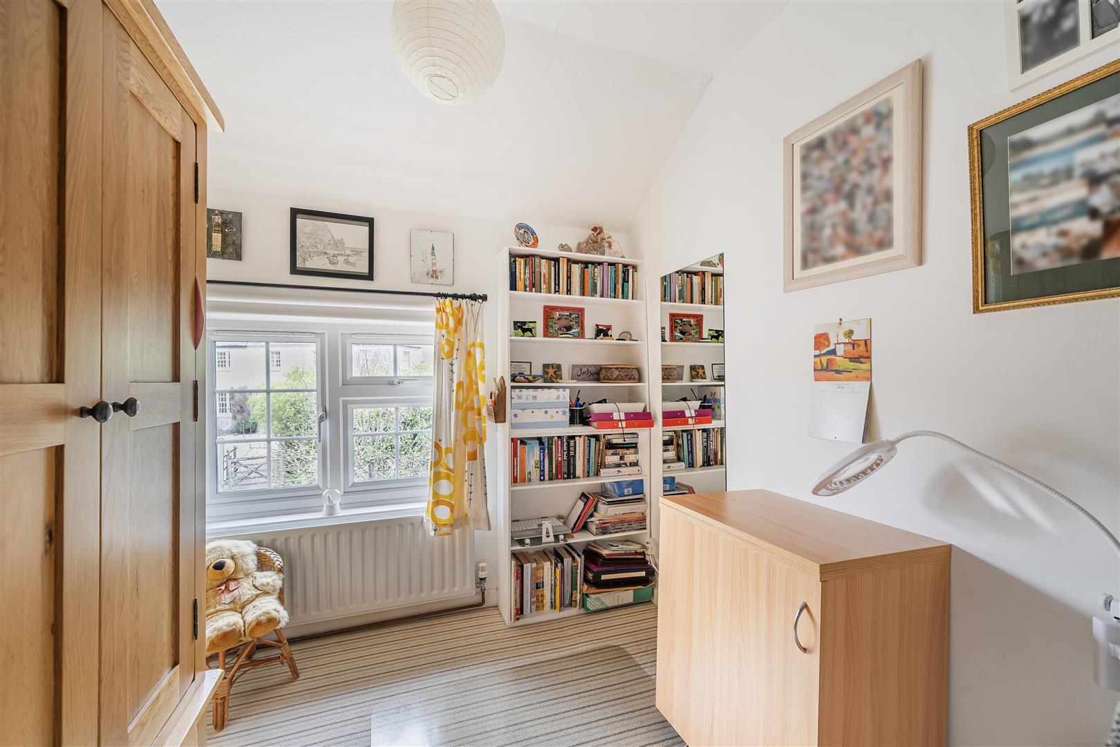 Sitting Room - Bay window to front elevation, Jetmaster fire with slate hearth, oak flooring, built-in cupboards and extensive range of shelving.