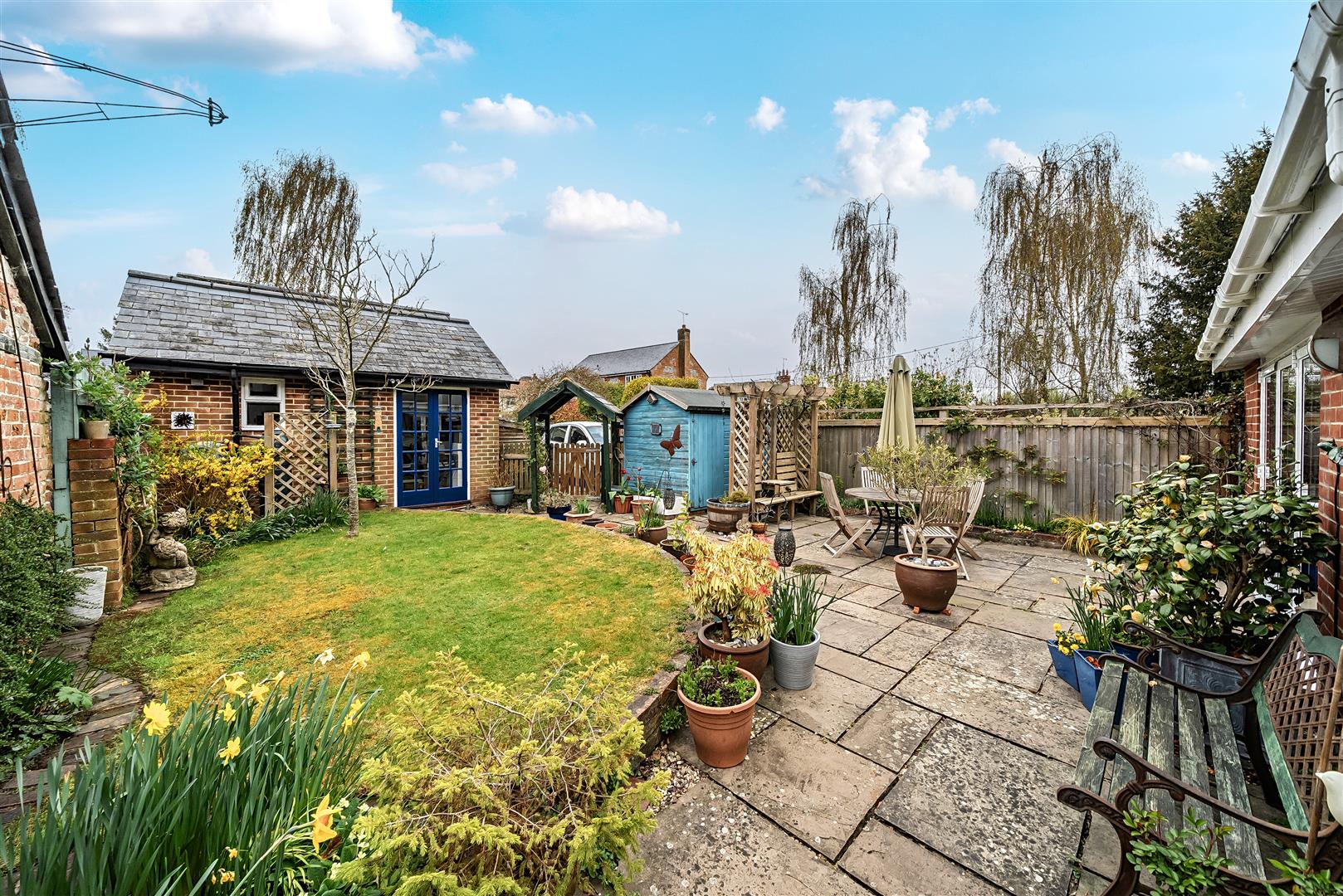 Outside - The property is approached via a picket gate in a low brick wall leading to a path to the front door, lawn, flowerbeds and shrubs. The rear garden has a large, paved seating area leading to a raised lawn with flowerbeds and shrubs, enclosed by walling and fencing. Wooden garden shed, oil tank, electric charging point, parking spaces for two vehicles. Wall mounted Sundial.