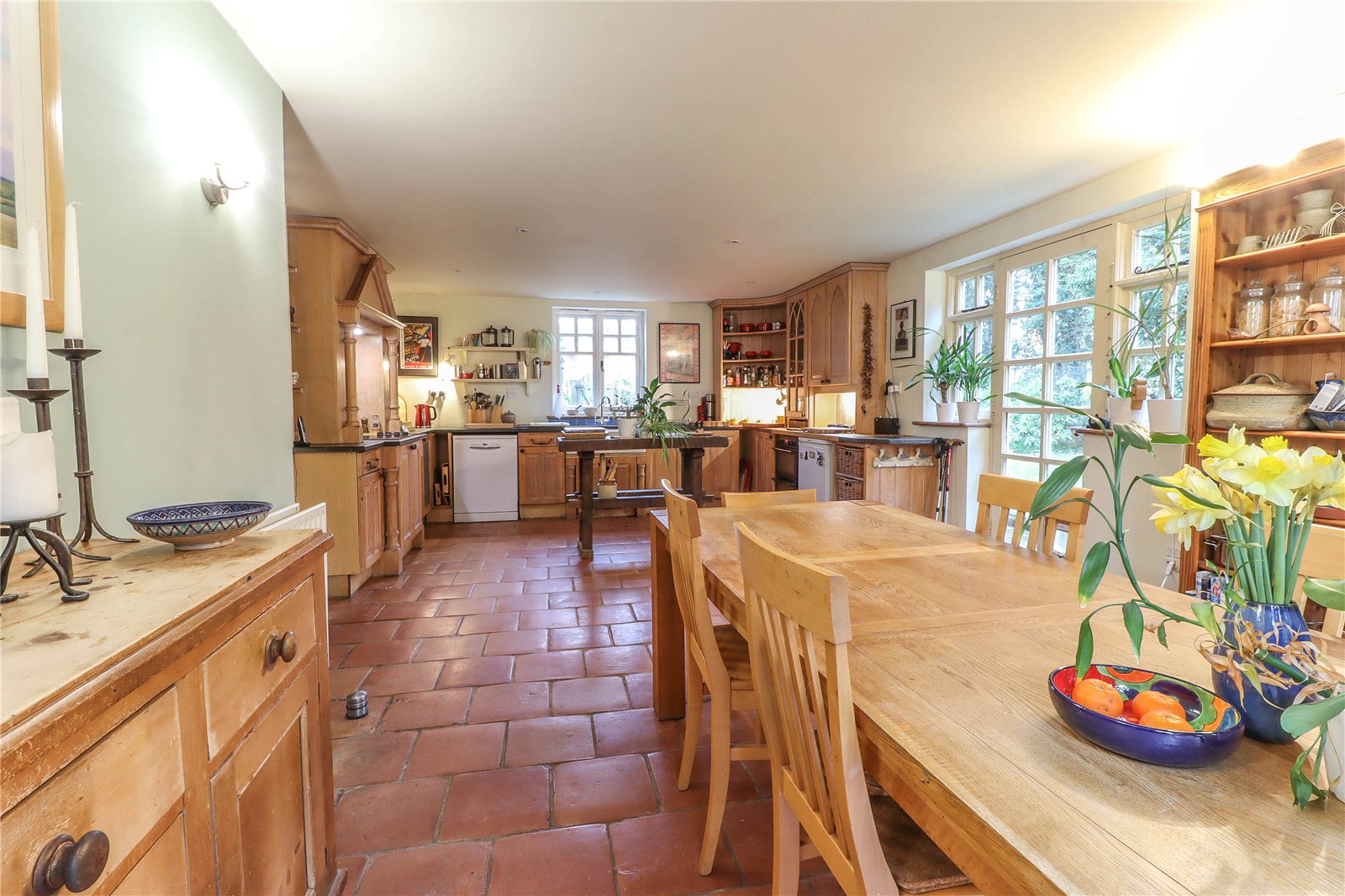 A pretty Victorian semi-detached former workers? cottage that has been sympathetically extended and now provides excellent family accommodation, including a large and versatile main living room, a separate cosy sitting room with fireplace and log burner, and an excellent farmhouse-style kitchen/dining room with glazed doors opening onto the main terrace and garden, together with a utility room and shower room on the ground floor. The first floor includes a large principal bedroom with Juliet balcony and a recently replaced en suite bathroom with separate shower, three further bedrooms and a family bathroom. The cottage also retains the former laundry, now a useful detached garden store with the original copper still in one corner, while a pretty garden wraps around the side and rear of the property with a south-westerly aspect, a further attractive garden extends to the front, and a large driveway provides ample parking. This pretty and extremely practical home is set in a beautiful and quiet village with a superb community and a range of amenities.