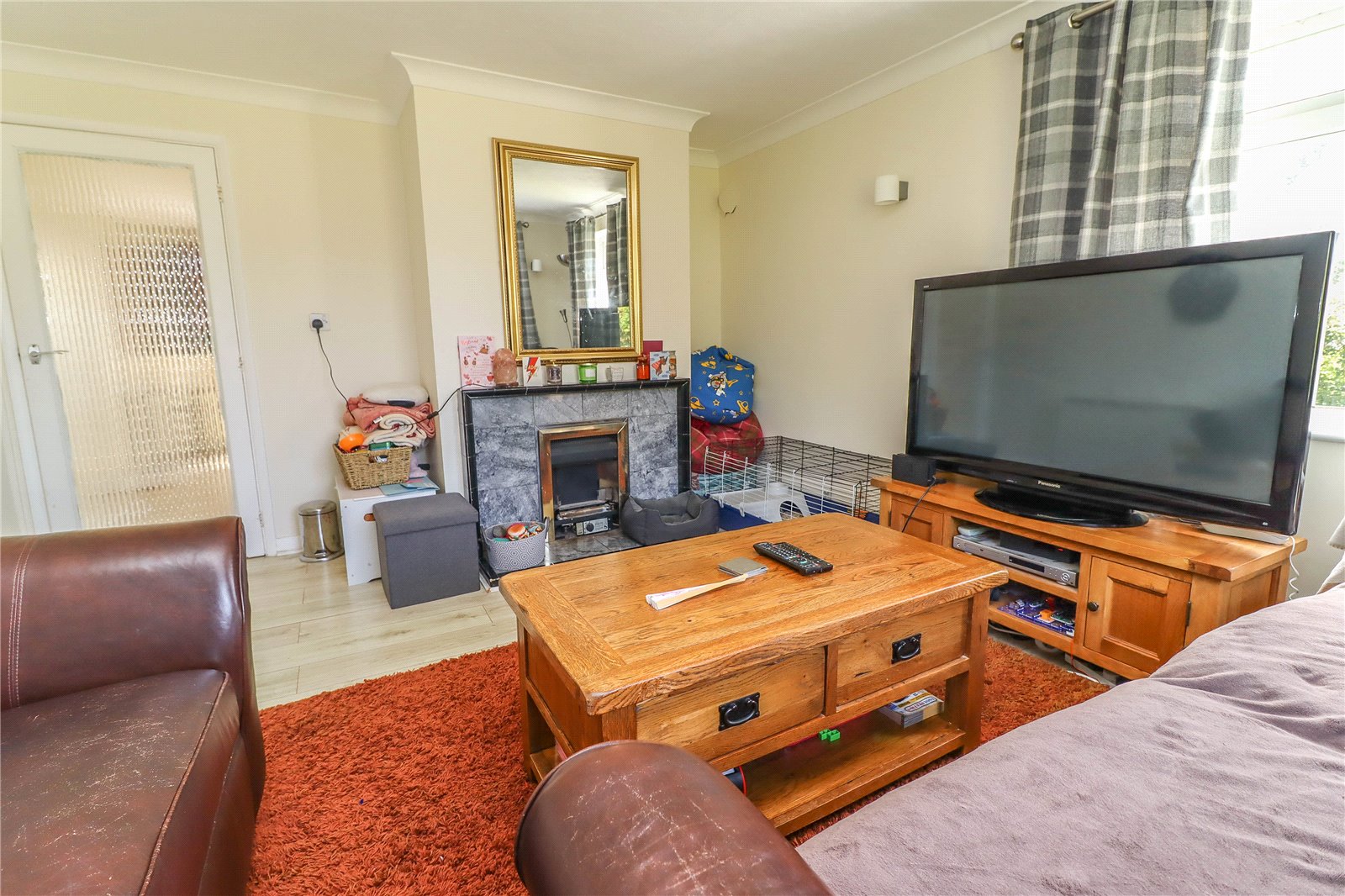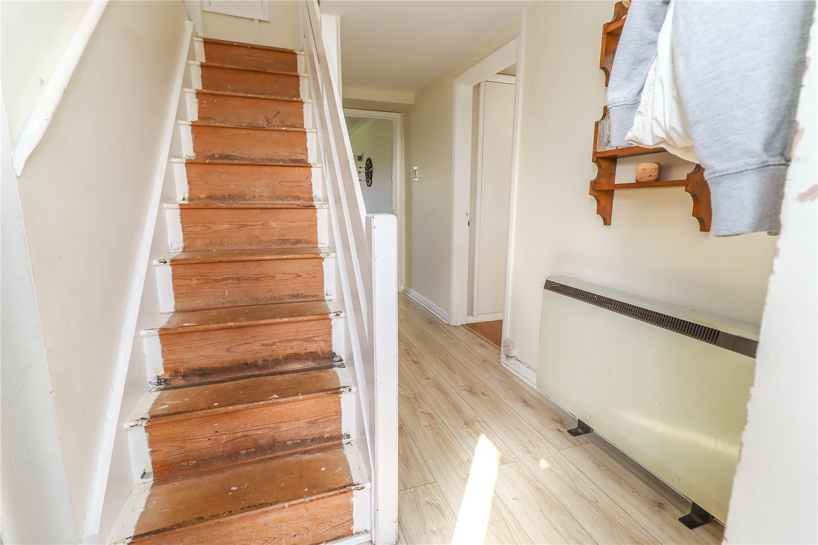 Reception Hall Staircase rising to the first floor with balustrade to one side. Door to understairs storage cupboard. Ceiling light point. Doors to living room, kitchen/dining room and bathroom.